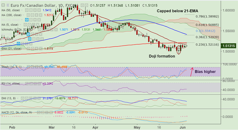 - Upside is struggling at 21-EMA resistance at 1.5172, break above finds next major resistance at 200-DMA at 1.5213.