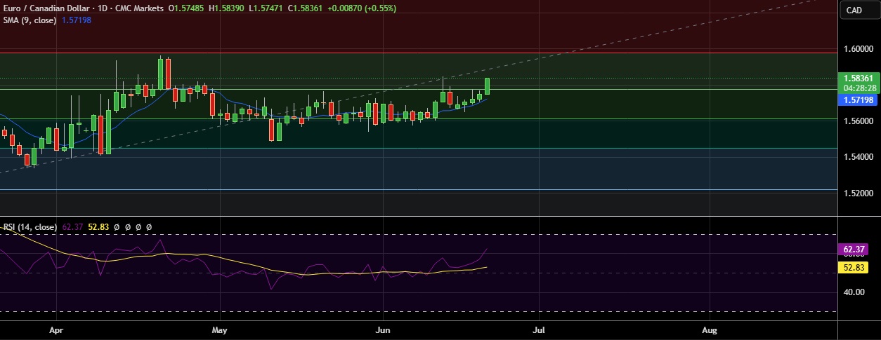 • EUR/CAD rose on Friday as weaker oil prices and soft Canadian retail sales data pressured the loonie..