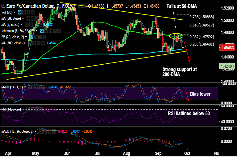 Support levels - 1.4526 (200-DMA), 1.4458 (triangle base), 1.4442 (Sept 14 low)
