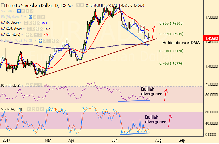 Support levels - 1.4546 (5-DMA), 1.4510 (trendline), 1.4437 (200-DMA)