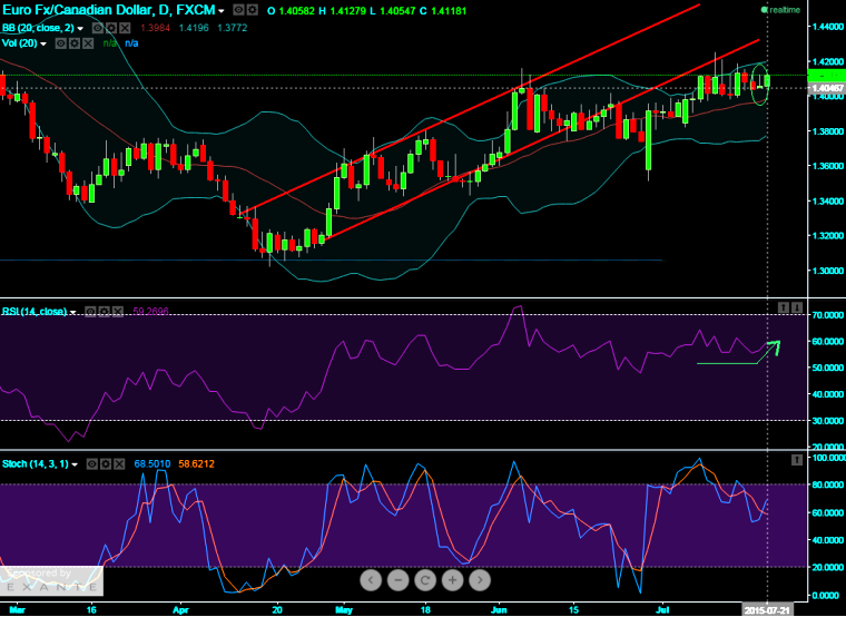 It is traced out that inverted hammer pattern candle occurred at 1.4058 levels which is to be considered as a caution of either probable reversal upward or continuation of upswings. It is quite important to note that the inverted hammer pattern is a warning of potential price change, not a signal, in and of itself, to buy.