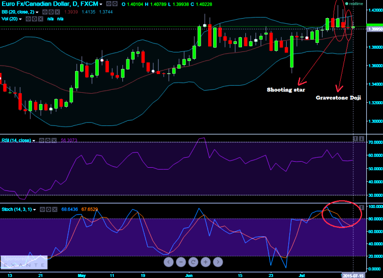 The formation of Gravestone doji and shooting star candlestick patterns at 1.4010 and 1.4109 levels on EOD charts confirms reversal of existing rallies.