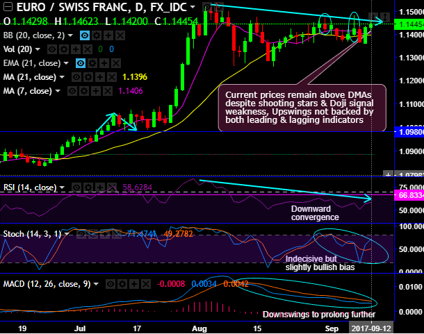 Well, contemplating the tight range for the day, at spot reference: 1.1455, boundary binaries are advised with upper strikes at 1.1485 (next strong resistance) and lower strikes at 1.1396 (21DMA level). Thereby, trading between these strikes likely to derive certain yields in this puzzling trend and more importantly these yields are exponential from spot movements.