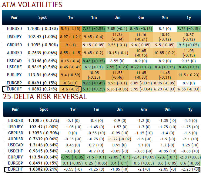 Please be informed that the implied volatilities of EURCHF ATM contracts of all expiries have been the least among G10 currency segment.