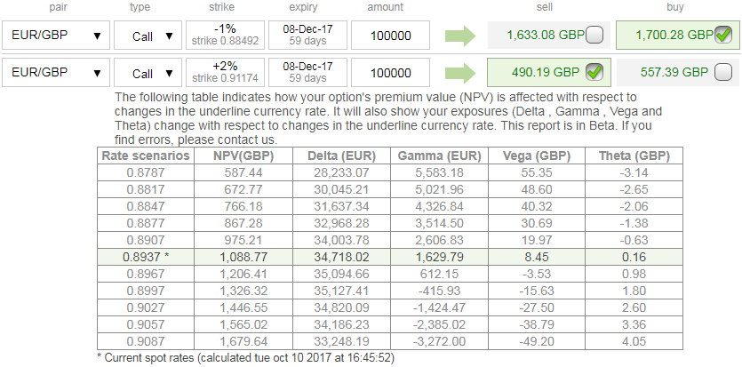 As shown in the above diagram, buy a 2-month 0.8850-0.9150 EURGBP call spread at the net delta of 0.34 for 52bp. Spot reference 0.8939: