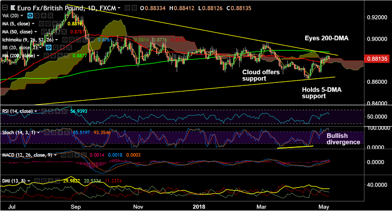 Support levels - 0.88 (110-EMA), 0.8781 (50-DMA), 0.8770 (21-EMA)