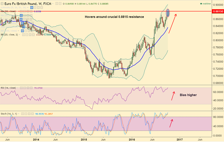 FxWirePro: EUR/GBP continues to make fresh multi-year highs, hovers around 0.8815, break above targets 0.8885