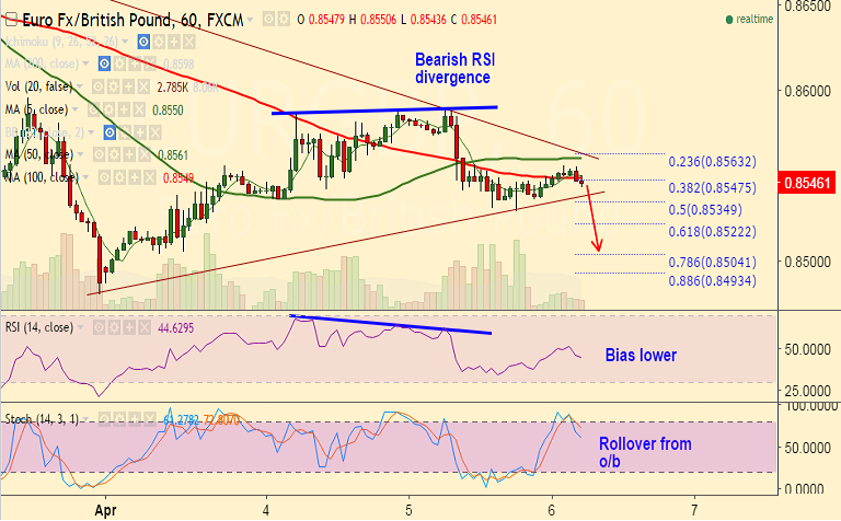 - Strong support at 0.8540 (5-DMA and trendline on hourlies), break below will see drag upto 0.85.