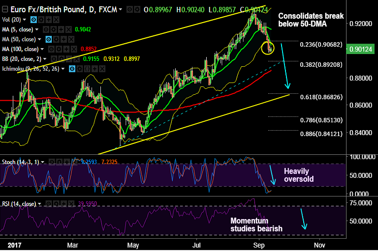 - Decisive break above 50-DMA could see minor reversal upto 20-DMA at 0.9155. Further upside only on break above.