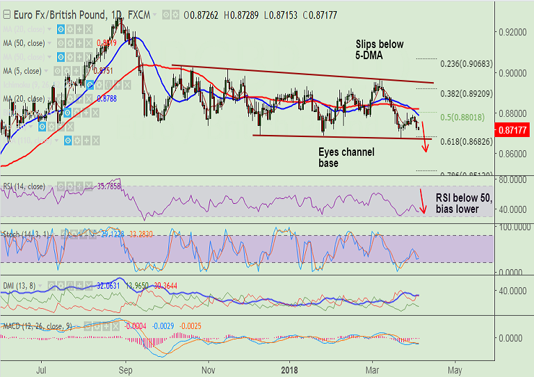 Resistance levels - 0.8751 (5-DMA), 0.8788 (20-DMA), 0.8819 (50-DMA)