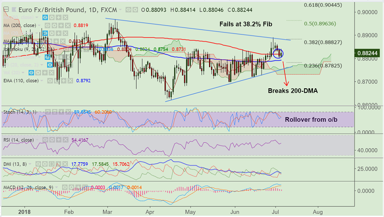Resistance levels - 0.8819 (200-DMA), 0.8833 (5-DMA), 0.8882 (38.2% Fib)