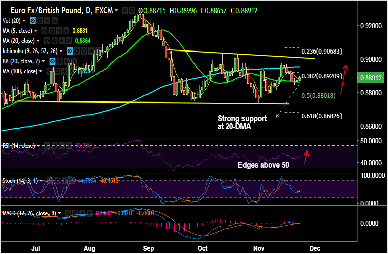 Support levels - 0.8881 (5-DMA), 0.8864 (20-DMA), 0.8811 (Nov 10 low)