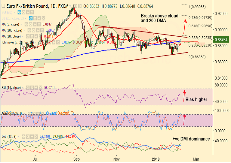 - Breakout at 0.8910 could see upside till 0.90 levels. On the flipside, retrace below 0.8855 levels negates bullish bias.