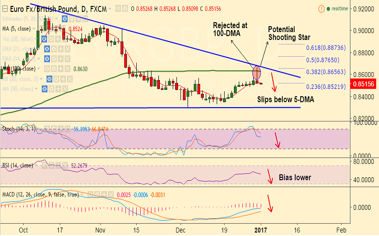 - Major support levels - 0.8452(20-DMA), 0.8432 (Dec 22 low), 0.8333 (Sept 6 low), 0.83 (major trendline)