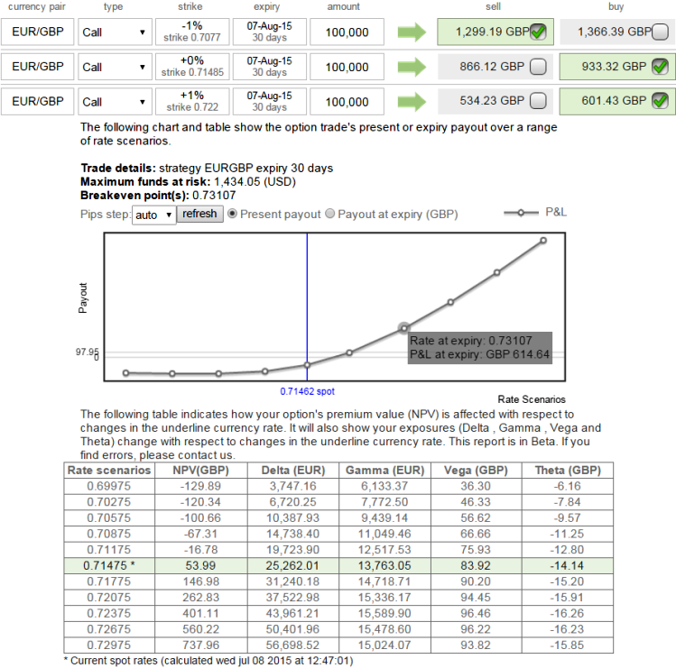 Hence, we recommend selling 1M (-1%) in-the-money call, simultaneously buy 1M an at-the-money 0.51 delta call and buy another 1M (1%) out-of-the-money 0.38 delta call.