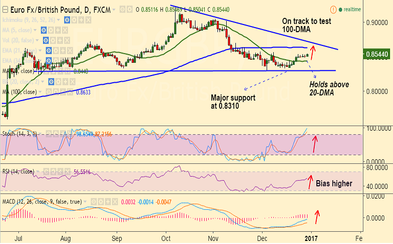 - The pair holds above 20-DMA currently at 0.8440, weakness only on break below.