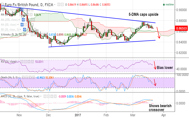 - 5-DMA at 0.8676 caps upside in the pair, break above could see revresal.