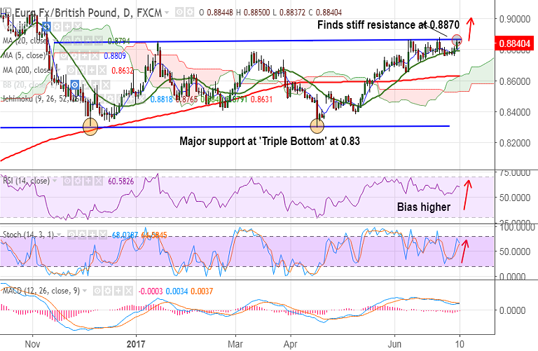 Support levels - 0.8809 (5-DMA), 0.8794 (20-DMA), 0.8632 (200-DMA)