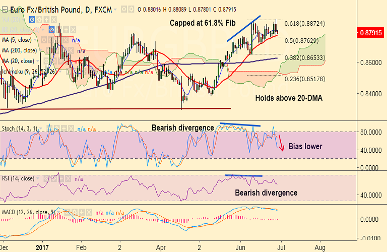 Resistance levels - 0.8806 (5-DMA), 0.8845 (June 21 high), 0.8870 (61.8% Fib)