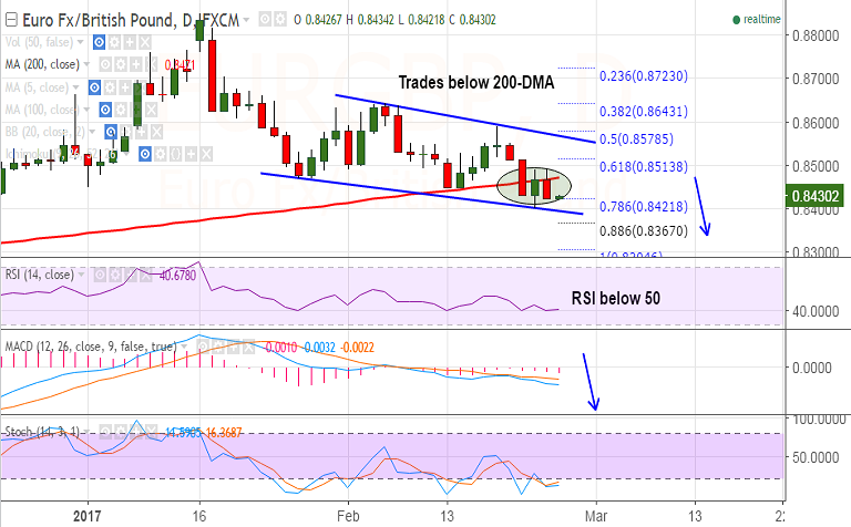 Resistance levels - 0.8455 (5-DMA), 0.8471 (200-DMA), 0.8513 (61.8% Fib)