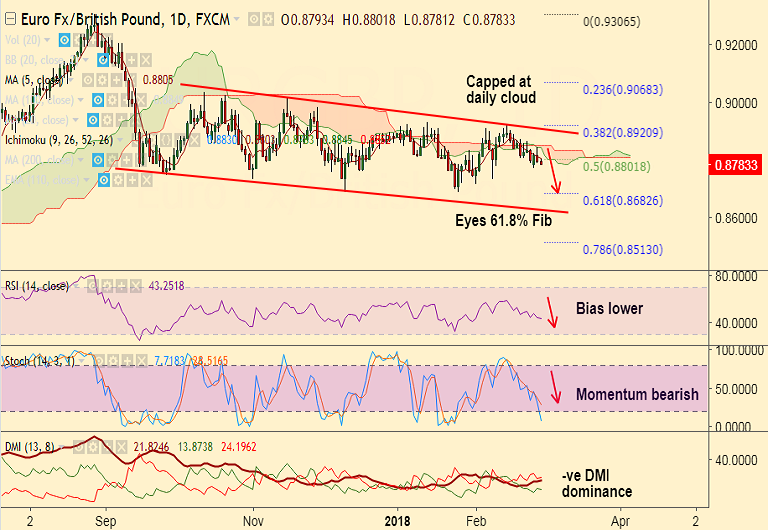 - EUR/GBP recovery attempts were capped at daily cloud which offers strong resistance at 0.8845.
