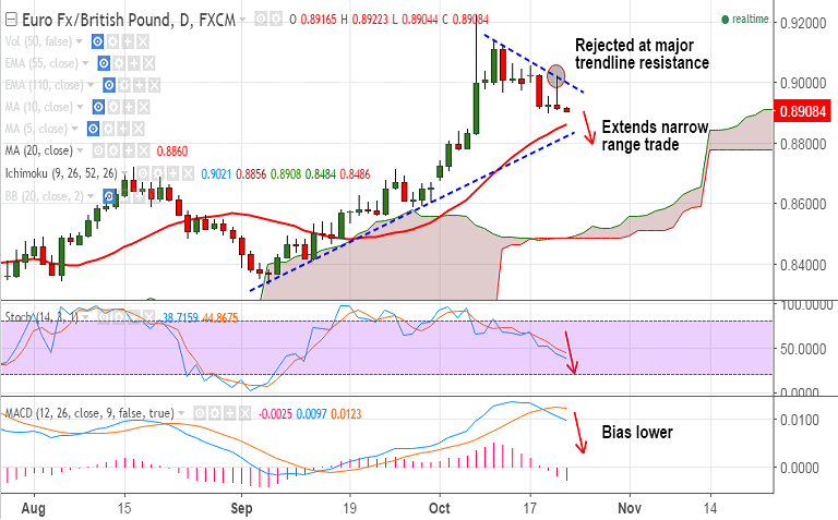 - Major resistance levels - 0.8941 (5-DMA), 0.8958 (Oct 19 high), 0.8985 (trendline), 0.9030 (Oct 18 high).