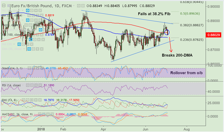 Resistance levels - 0.8819 (200-DMA), 0.8839 (5-DMA), 0.8882 (38.2% Fib)