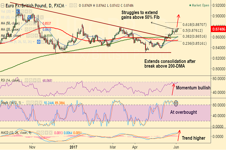 Support levels - 0.87, 0.8651 (38.2% Fib), 0.8597 (200-DMA), 0.8571 (20-DMA)