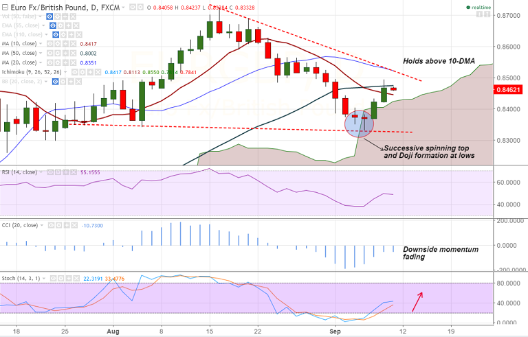 - Major resistance levels - 0.8476 (50-DMA), 0.8495 (Sept 8 high), 0.85, 0.8524 (20-DMA & trendline).