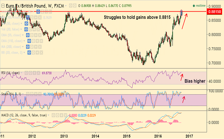 FxWirePro: EUR/GBP struggles to hold gains above 0.8815, bias higher