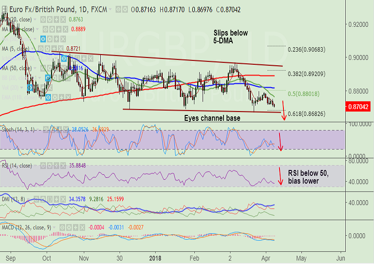 - EUR/GBP is extending grind below 5-DMA, intraday bias bearish.