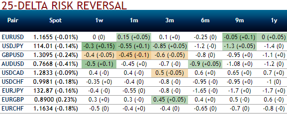Please be noted that the risk reversals are still indicating bearish risks, while positively skewed IVs of the same tenor signifies the hedgers’ interests in OTM put strikes.