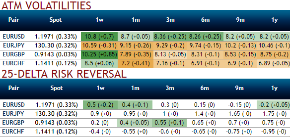The steepness of the EURJPY risk-reversal curve renders back-end tenors better shorts, risk reversals have been bearish neutral. While positively skewed IVs towards OTM put strikes signifies hedgers’ bearish sentiments but puzzles prevailing uptrend of euro.