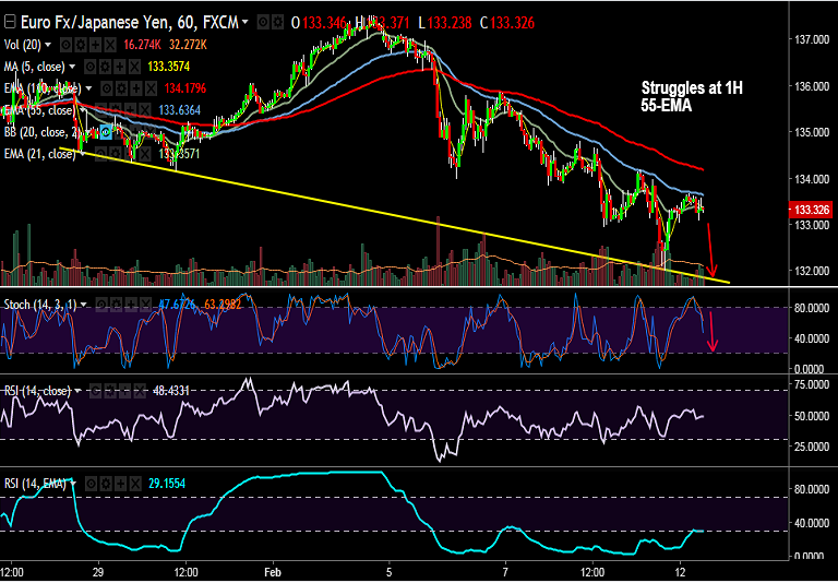 Resistance levels - 133.58 (100-DMA), 133.63 (1H 55-EMA), 134.17 (1H 110-EMA)