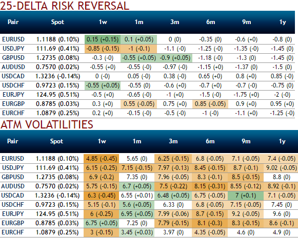 The hedgers’ interests of EURJPY have been explained by nutshell showing delta risk reversal, however, no new shift in sentiments is observed both in short and long run. As a result, we don’t see much traction OTM calls. The bearish-neutral but downside risks are indicated by these OTC tools.