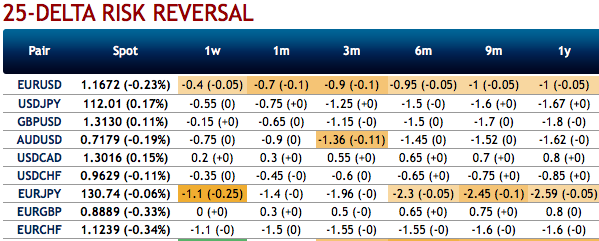 While negative risk reversal numbers of all euro crosses (especially EURJPY) across all tenors are also substantiating bearish risks in long run amid minor abrupt upswings in the short-term.