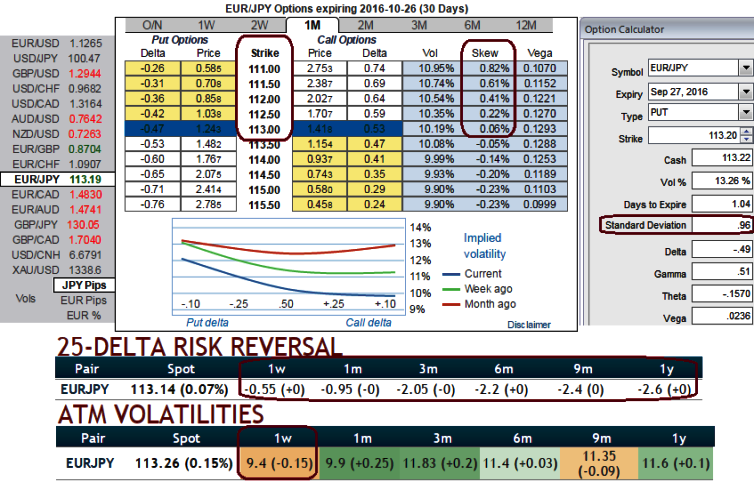 EURJPY IVs of 1w tenors have reduced to below 9.5% after BOJ’s shift in its monetary policy stance, while risk reversals still indicate the bearish hedging sentiments in the FX OTC markets.
