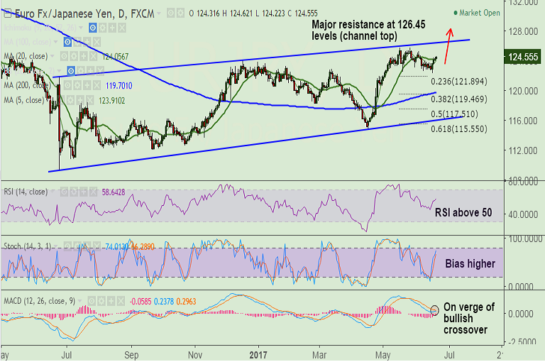 Recommendation: Good to go long on dips around 124.40, SL: 123.90, TP: 125/ 125.30/ 125.80