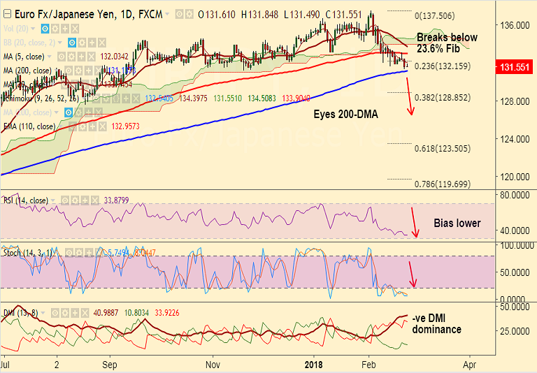 - On the flipside, break above 110-EMA will see test of 20-DMA at 133.74. Breakout at 20-DMA invalidates bearish bias.