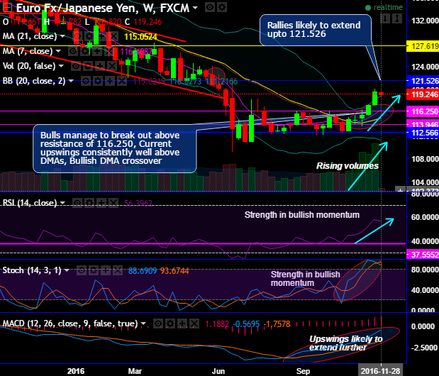 EURJPY rallies likely to drag as the bulls breach stiff resistance at 116.250 levels and sustain above these levels, the major trend appears to be in the consolidation phase.