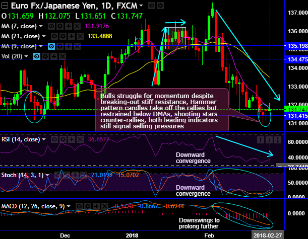 Trade tips: On trading perspective, it is advisable to buy boundary binaries using upper strikes at 132.340 and lower strikes at 131.659 levels, the strategy is likely to fetch leveraged yields as long as underlying spot FX remains between these two strikes before the binary expiry duration.