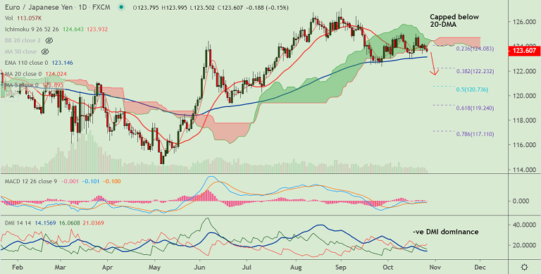 On the flipside, 20-DMA is strong resistance at 124.02. Break above cloud will negate bearish bias.