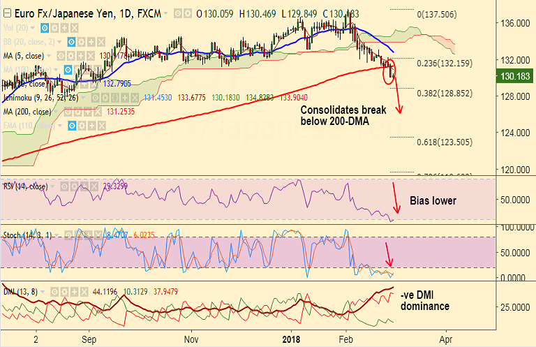 Call update: Our previous call (https://www.econotimes.com/FxWirePro-EUR-JPY-breaks-200-DMA-support-slips-below-131-handle-good-to-go-short-on-rallies-1174056) has hit TP1/2.
