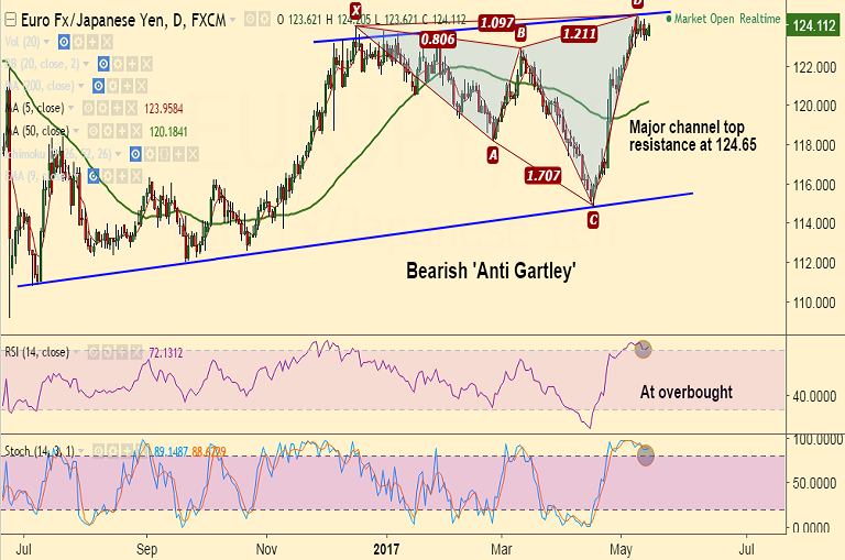 Resistance levels - 124.54 (May 9 high), 124.65 (channel top & May 2016 high), 125