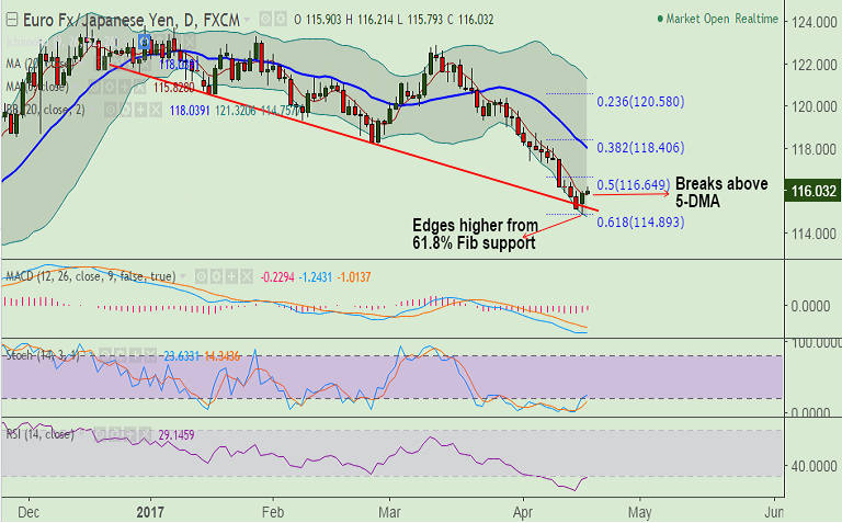 Support levels - 115.84 (5-DMA), 115.20 (trendline), 114.89 (61.8% Fib retrace of 109.205 to 124.094 rally)
