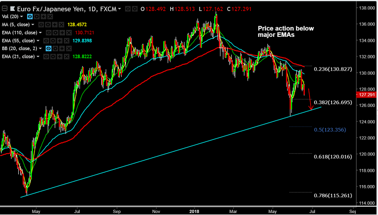 Support levels - 127, 126.69 (38.2% Fib), 126, 125.25 (major trendline)
