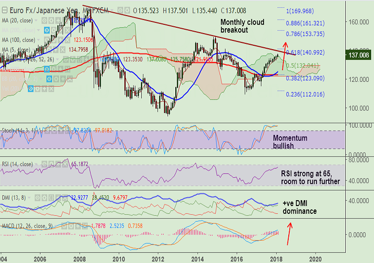 - EUR/JPY extends breakout above monthly Ichimoku cloud, we see scope for further upside.