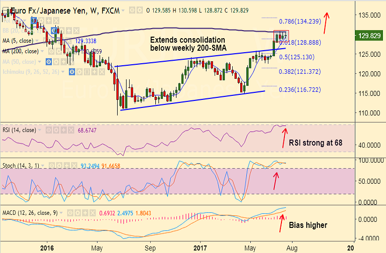 - Consolidation to continue into the week ahead, with weekly 200-SMA at 130.60 offering strong resistance.
