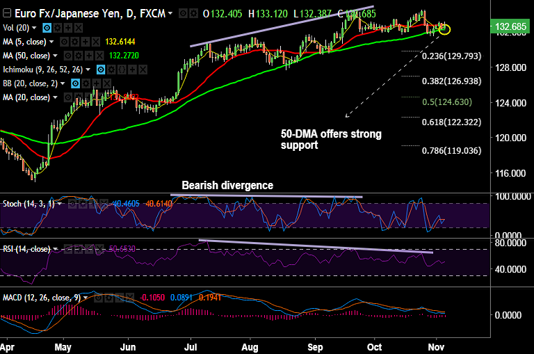 Support levels - 132.61 (5-DMA), 132.27 (50-DMA), 131.45 (Oct 30 low), 130.60 (100-DMA)
