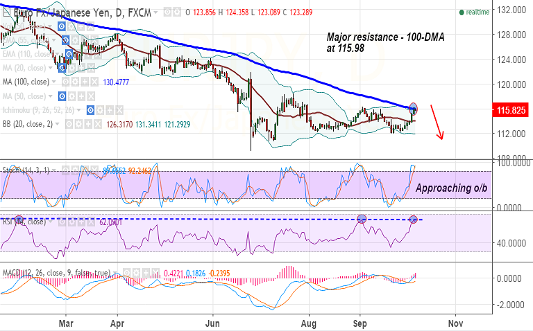 - EUR/JPY pivotal near major 100-day MA resistance around 116 levels.